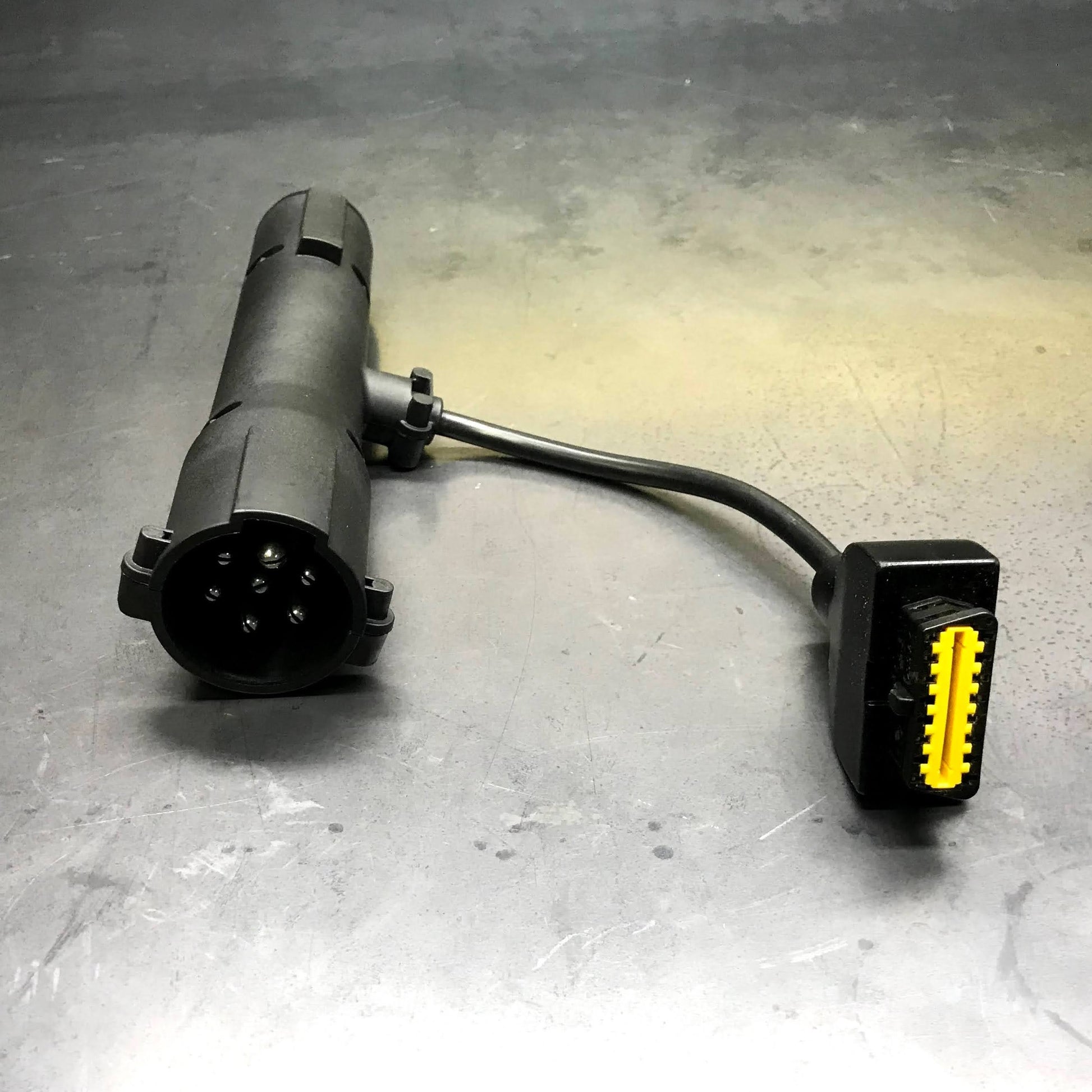 The TEXA PLC adapter cable (T59) for trailer ABS systems is used to convert the 7 pin trailer connector to OBDII to connect to your TEXA Navigator or Multihub communication adapter.